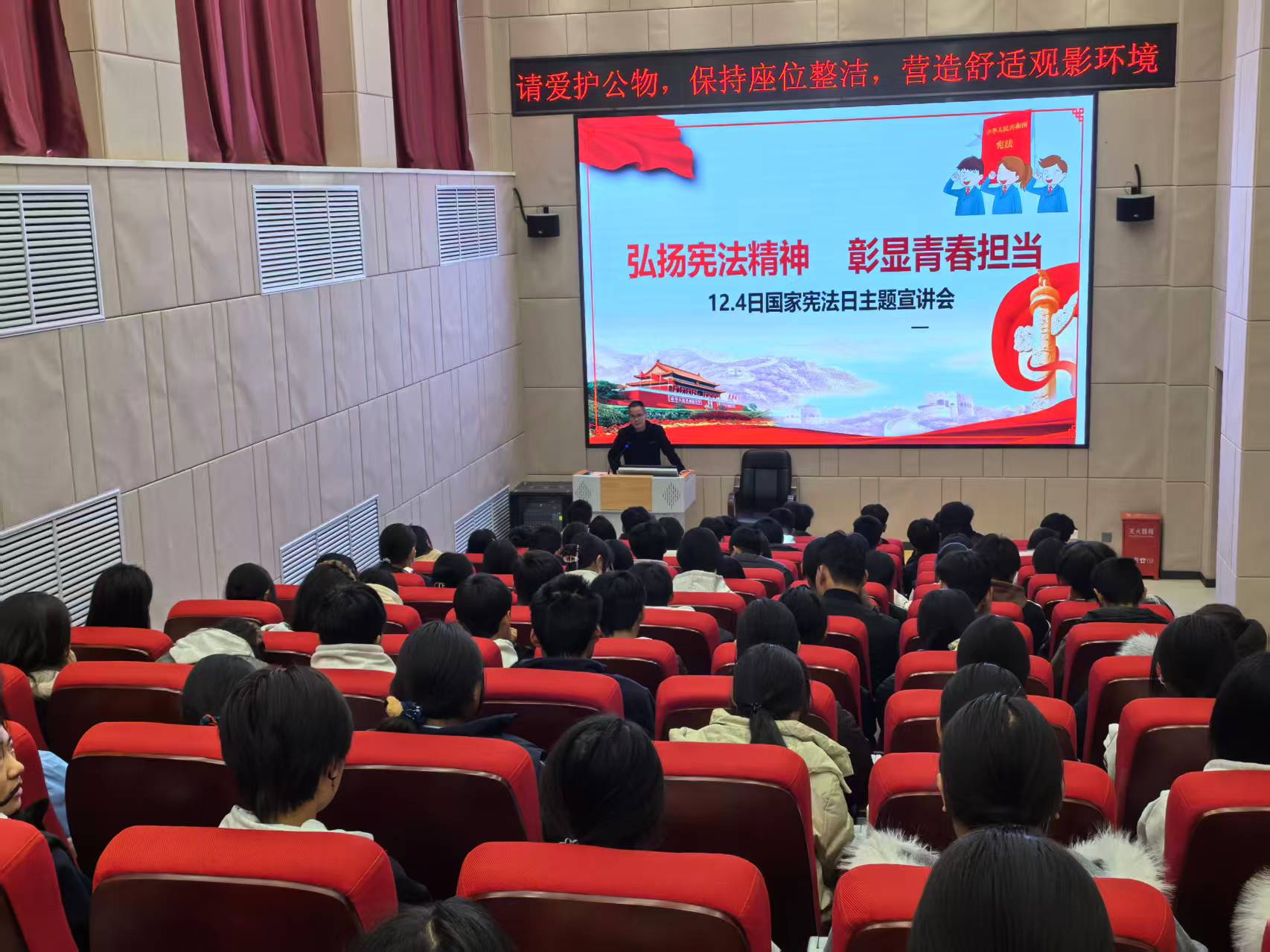 3.举办专题法治讲座。11月26日,邀请甘南州人民检察院“岗拉梅朵”宣讲团杨艳琴同志到公司开展“与宪同行,护航青春”讲座,280余名师生参加,讲座围绕法律常识、身边案例及自我保护等内容进行讲解。12月5日公司思政名师工作室、思政教研室主任杨宏同志结合员工特点,开展“弘扬宪法精神、彰显青春担当”讲座,130余名同学参加,讲座引导员工树立法治观念,筑牢守法意识。