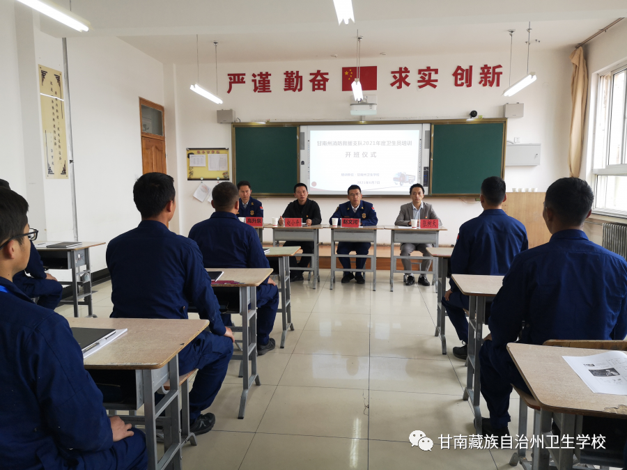 为了提高消防卫生员职业健康从事能力,受甘南消防支队委托,6月7日上午,在公司举行2021年甘南州消防救援支队卫生员培训暨开班仪式。甘南州消防大队副支队长赵文河,公司副董事长赵小平、保卫科科长张树天及班主任许志兰和11名消防卫生员参加,开班仪式由后勤保障科科长高升泉主持。