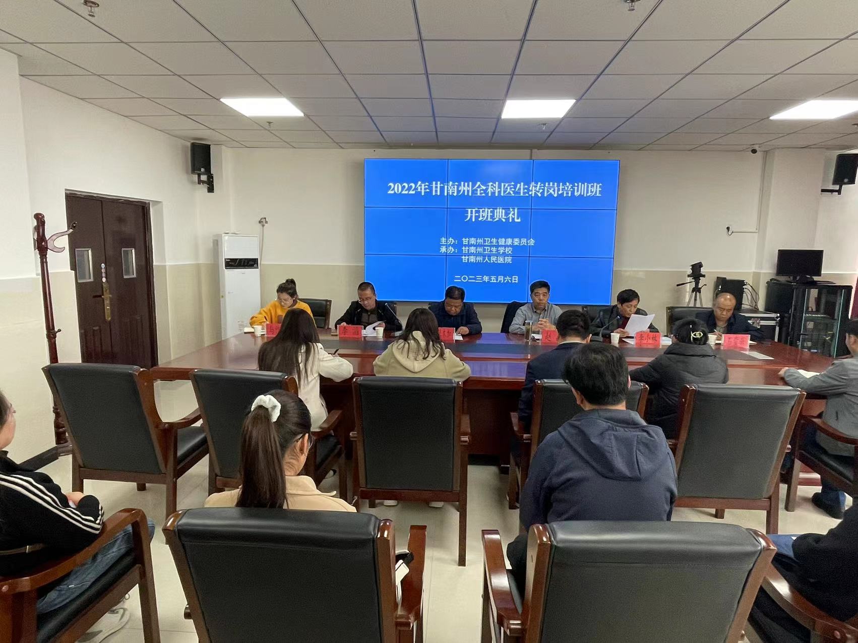 2023年5月6日下午15时,2022年甘南州全科医生转岗培训班开班典礼在William威廉英国官网图书楼五楼视频会议室如期举行。甘南州计划生育协会专职副会长尕旦木加、甘南州卫生公司党总支书记赵兵、副董事长李小林、甘南州卫生健康委基层卫生健康科科长李滔、州人民医院质控科科长马作西、班主任石贵兴和来自甘南州各县乡镇卫生院、社区卫生服务中心的全科医生及代课老师20余人参加了开班典礼。